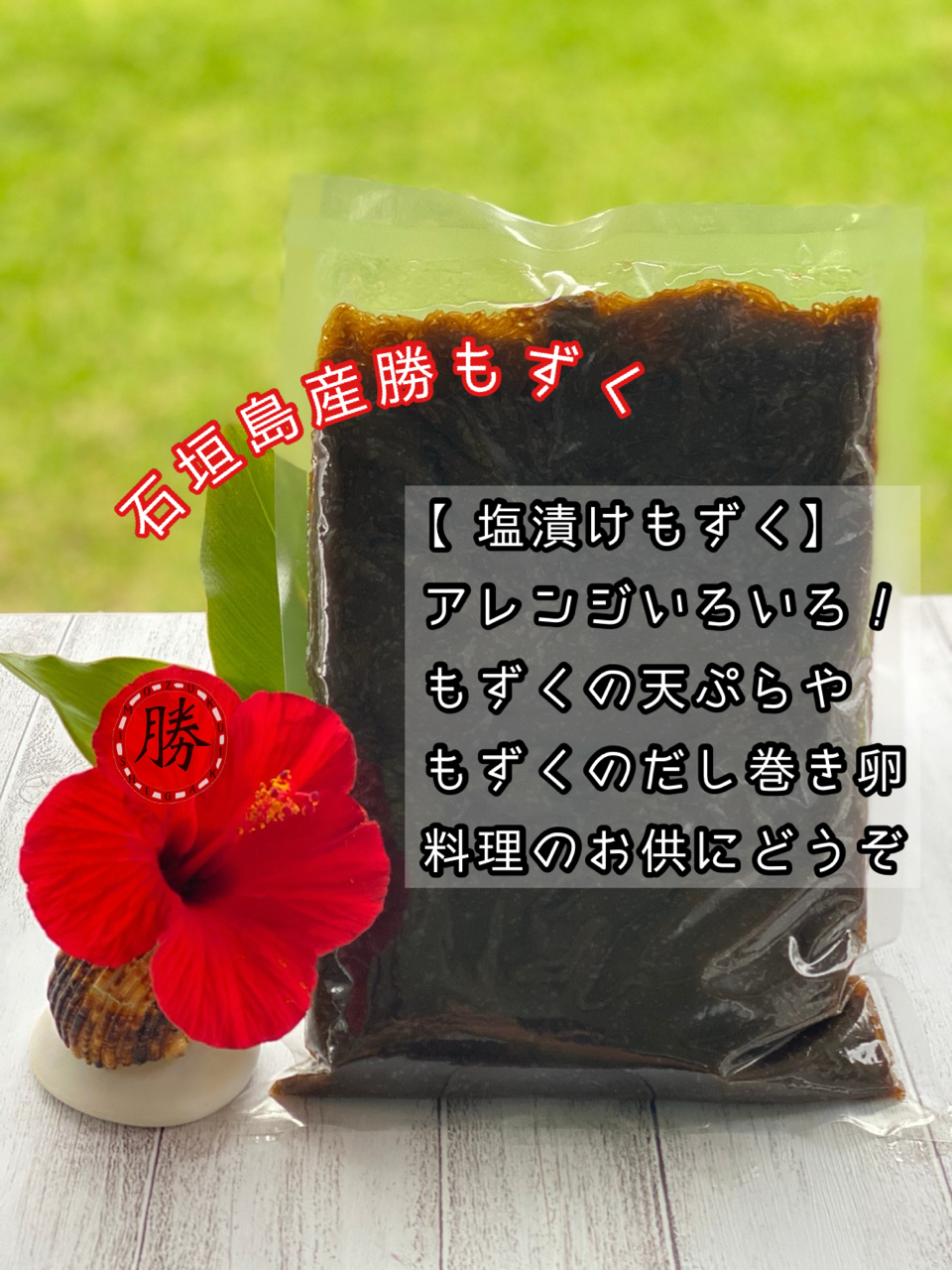 石垣島産モズク。塩もずくは、酢の物・スープ・天ぷら・サラダなど様々な料理に使えます。