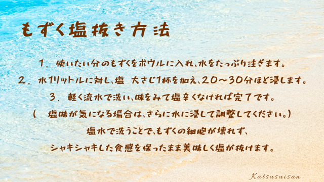 ▶塩もずくについて(塩抜き方法)